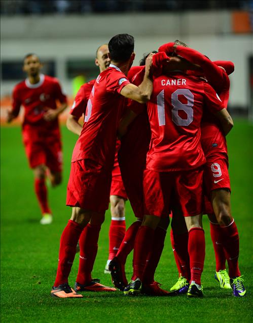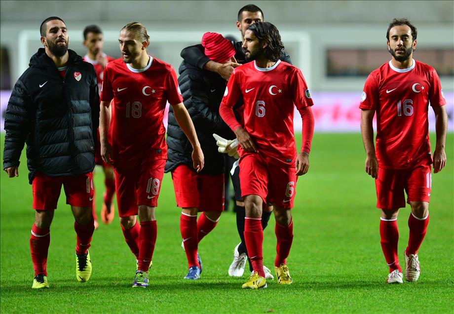 A Milli Futbol Takımı, 2014 Dünya Kupası Avrupa Elemeleri D Grubu'nda, Estonya ile A Le Coq Arena stadında karşı karşıya geldi. Maçı kazanan milli takım oyuncuları sevinç yaşadı. (Yakup Çabuk - Anadolu Ajansı)Yakup Çabuk