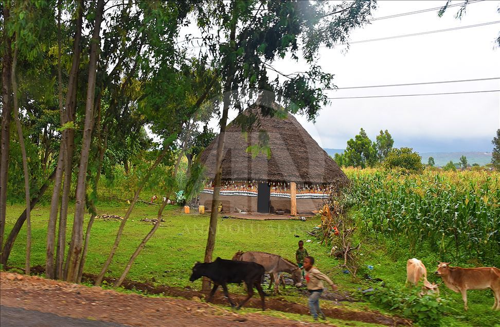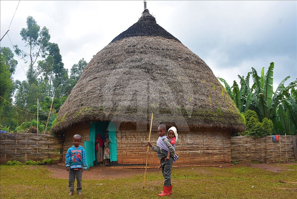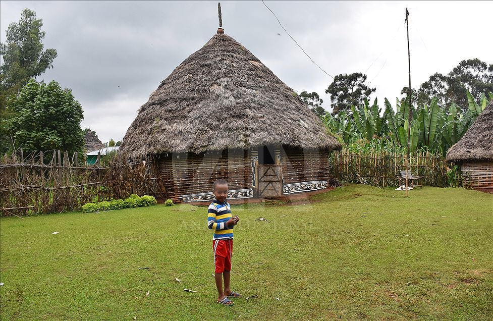 Doğu Afrika ülkesi Etiyopya'nın kırsal bölgelerinde yaşayan insanlar, asırlardan beri süregelen geleneksel kabile evi mimarisini yaşatıyor. Ot, bambu ağacı ve toprak kullanarak, daire şeklinde inşa edilmiş yapılara sazlardan koni şeklinde çatı konulmasıyla ortaya çıkan geleneksel evlerin genişliği ile kapı ve pencere süslemeleri kabilelere göre değişiklik gösteriyor.