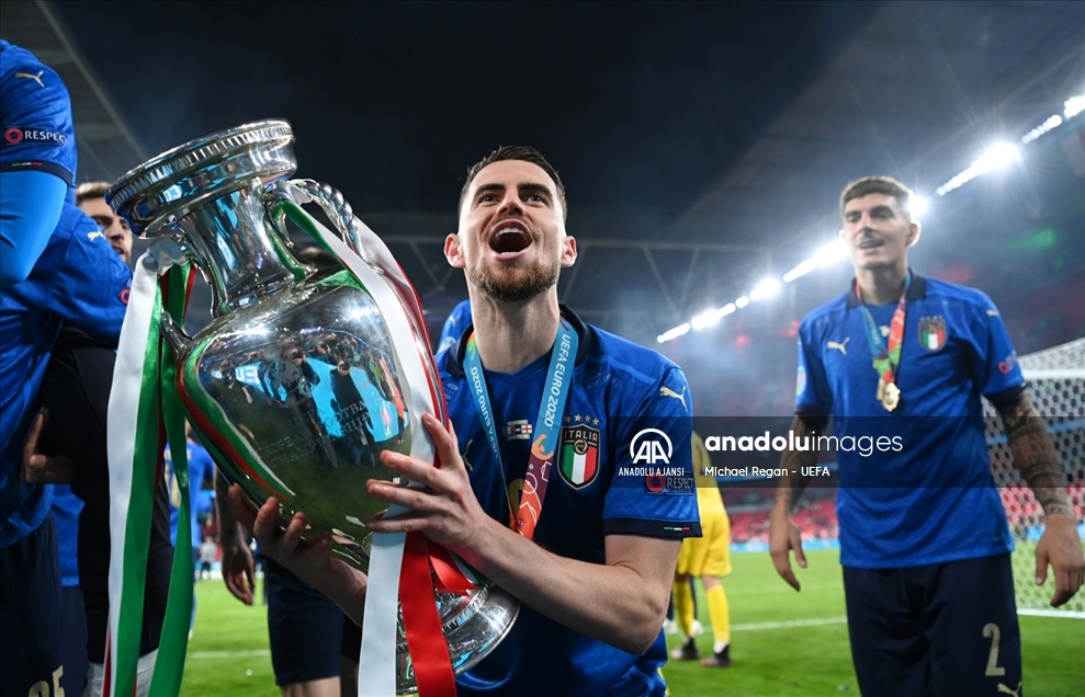 Avrupa Futbol Şampiyonası (EURO 2020) final maçında, İngiltere milli takımını Londra'daki Wembley Stadı’nda yenen İtalya milli takımı Avrupa Şampiyonu oldu. Takım futbolcusu Jorginho takım arkadaşlarıyla birlikte sevinç yaşadı.
