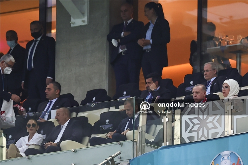 2020 Avrupa Futbol Şampiyonası (EURO 2020) A Grubu ikinci maçında A Milli Futbol Takımı, Bakü Olimpiyat Stadyumu’nda Galler ile karşılaştı. Karşılaşmayı Cumhurbaşkanı Recep Tayyip Erdoğan ve eşi Emine Erdoğan ile Azerbaycan Cumhurbaşkanı İlham Aliyev ve eşi Mihriban Aliyeva da seyretti. ( Ali Balıkçı - Anadolu Ajansı )Ali Balıkçı