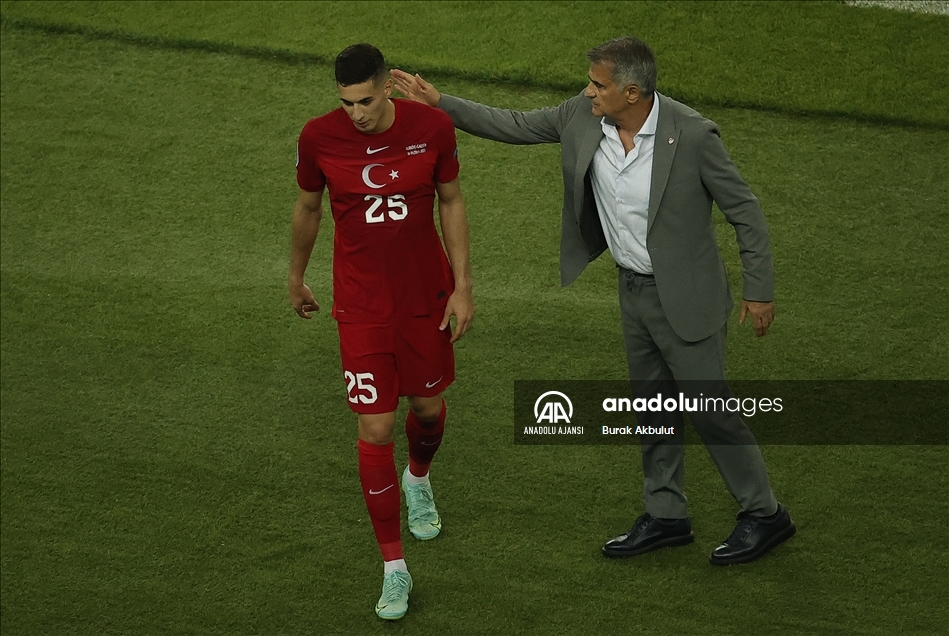 2020 Avrupa Futbol Şampiyonası (EURO 2020) A grubu ikinci maçında, A Milli Takım ile Galler milli takımı Azerbaycan’ın başkenti Bakü’deki Olimpiyat Stadı'nda karşı karşıya geldi. Karşılaşmayı kaybeden A Milli Takım teknik direktörü Şenol Güneş (sağda) ve futbolcu Mert Müldür (solda) üzüntü yaşadı. ( Burak Akbulut - Anadolu Ajansı )Burak Akbulut