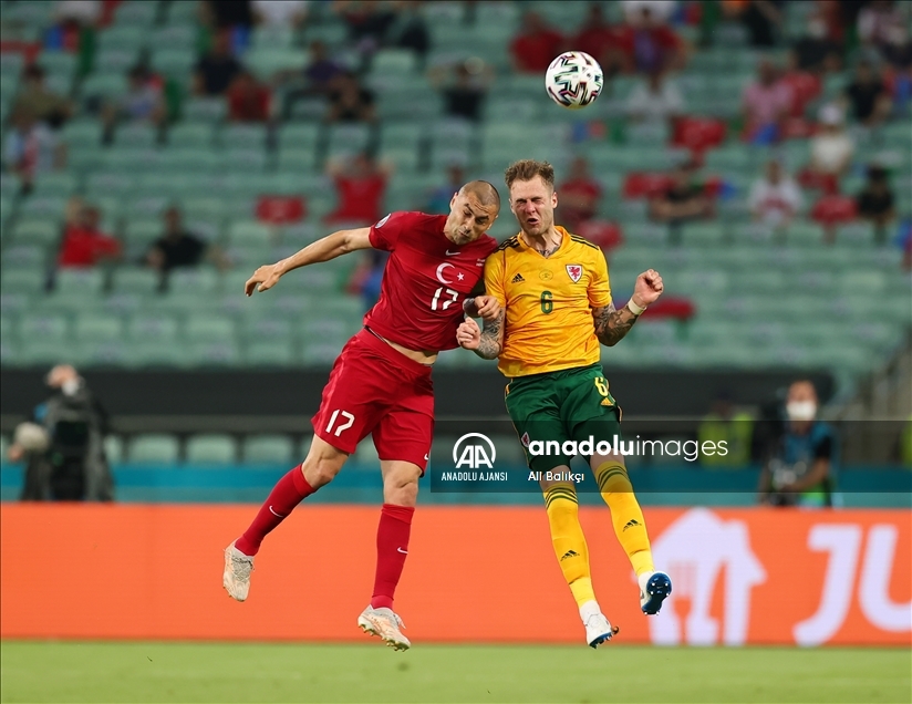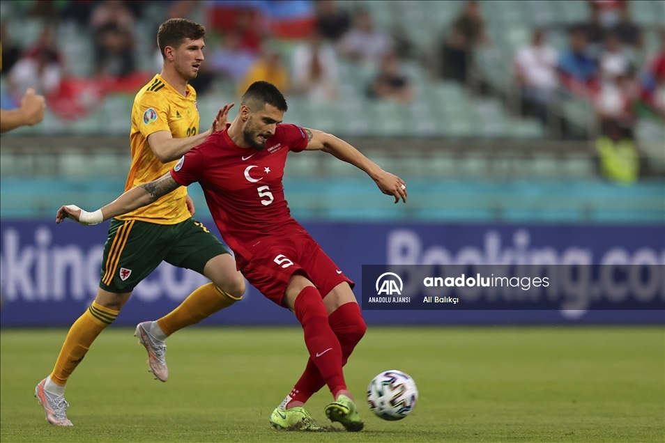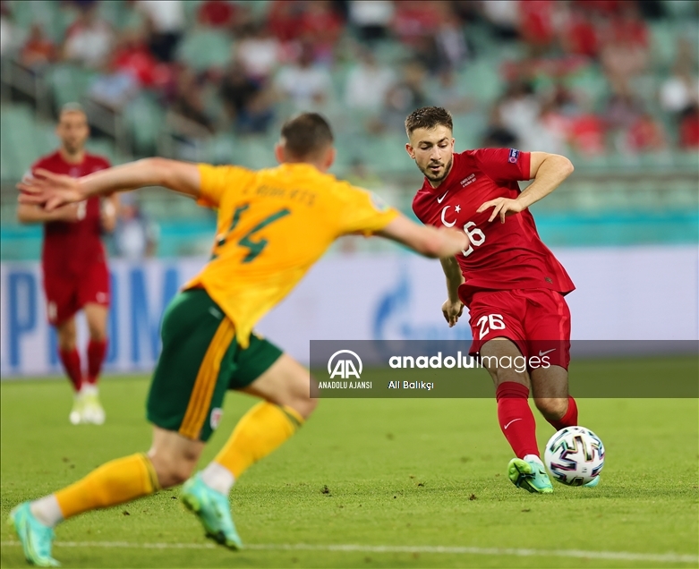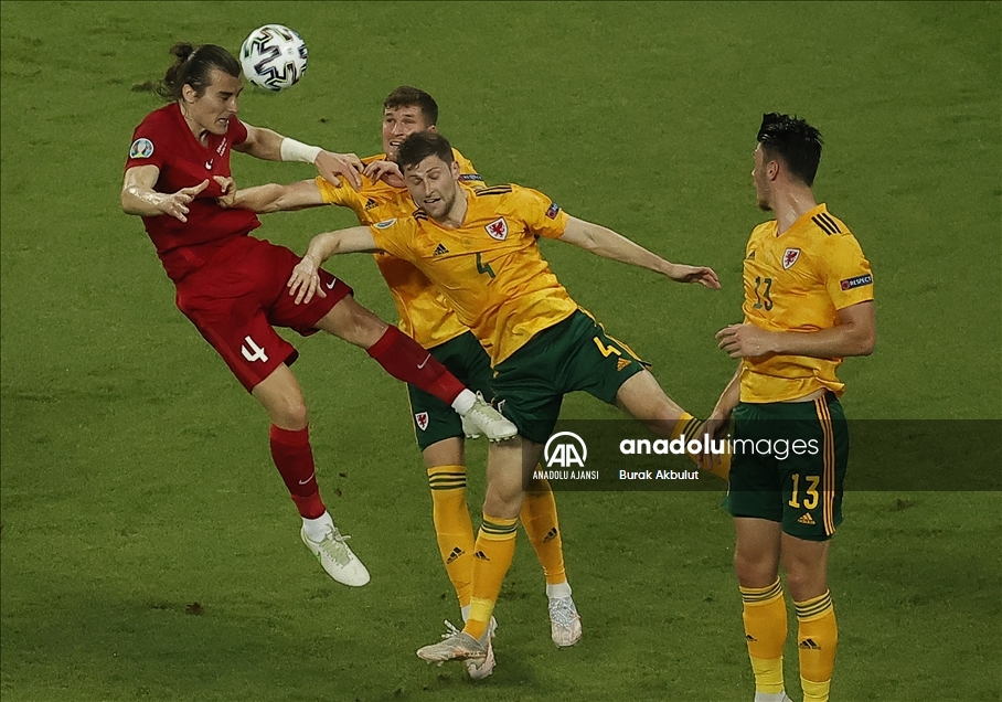 2020 Avrupa Futbol Şampiyonası (EURO 2020) A Grubu ikinci maçında A Milli Futbol Takımı, Bakü Olimpiyat Stadyumu’nda Galler ile karşılaştı. Bir pozisyonda A Milli Takım oyuncusu Zeki Çelik (2) Galler oyuncusu Daniel James (20) ile mücadele etti.