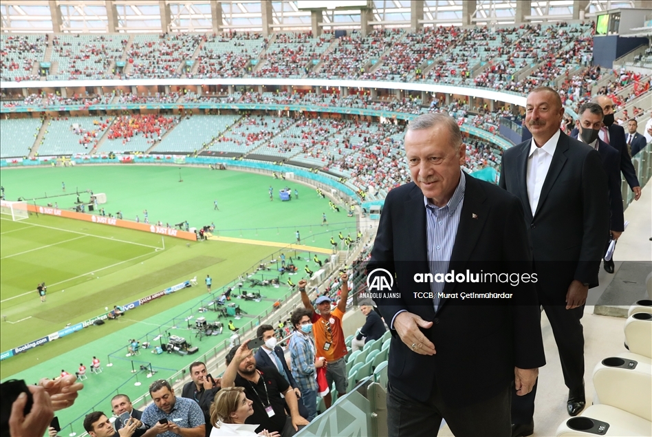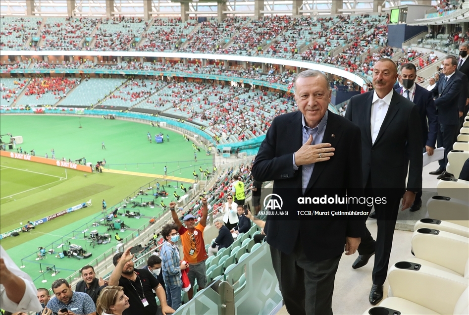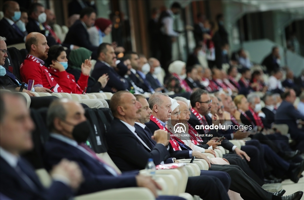2020 Avrupa Futbol Şampiyonası (EURO 2020) A grubu ikinci maçında, A Milli Takım ile Galler milli takımı Azerbaycan’ın başkenti Bakü’deki Olimpiyat Stadı'nda karşı karşıya geldi. Maçı, Cumhurbaşkanı Recep Tayyip Erdoğan ve Azerbaycan Cumhurbaşkanı İlham Aliyev de izledi. ( TCCB/Murat Çetinmühürdar - Anadolu Ajansı )TCCB/Murat Çetinmühürdar