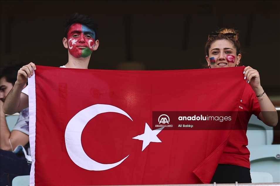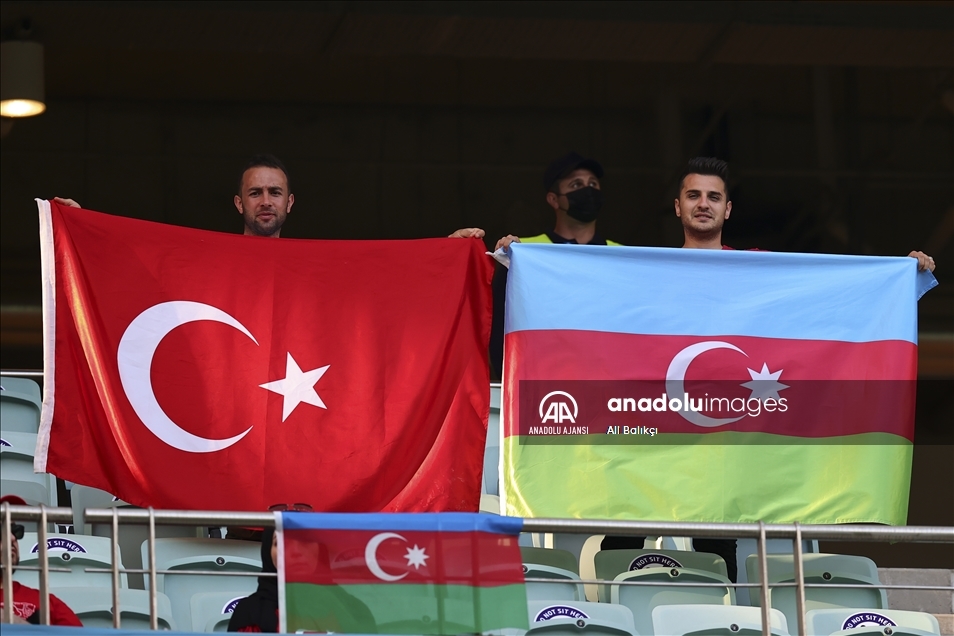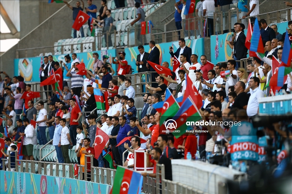 2020 Avrupa Futbol Şampiyonası (EURO 2020) A Grubu ikinci maçında A Milli Futbol Takımı, Bakü Olimpiyat Stadyumu’nda Galler ile karşılaştı. Tribünlerin çok büyük bölümünde Türk ve Azerbaycanlı futbolseverler yer aldı. Türk ve Azerbaycan bayrakları yan yana sallandı. ( Resul Rehimov - Anadolu Ajansı )Resul Rehimov
