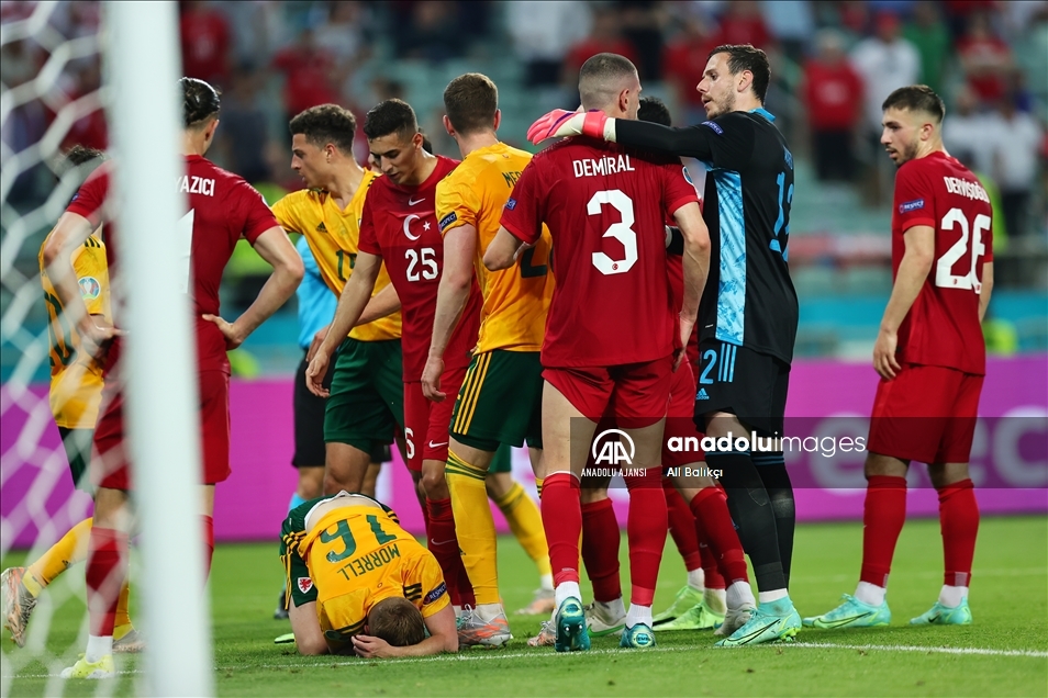 2020 Avrupa Futbol Şampiyonası (EURO 2020) A Grubu ikinci maçında A Milli Futbol Takımı, Bakü Olimpiyat Stadyumu’nda Galler ile karşılaştı. Bir pozisyon sonrası iki takım oyuncuları arasında tartışma yaşandı. ( Ali Balıkçı - Anadolu Ajansı )Ali Balıkçı