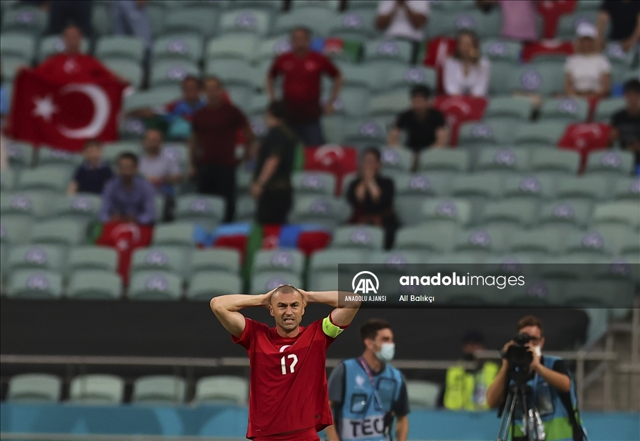 2020 Avrupa Futbol Şampiyonası (EURO 2020) A Grubu ikinci maçında A Milli Futbol Takımı, Bakü Olimpiyat Stadyumu’nda Galler ile karşılaştı. A Milli Takım oyuncusu Burak Yılmaz (17) mağlubiyet sonucunda üzüntü yaşadı. ( Ali Balıkçı - Anadolu Ajansı )Ali Balıkçı