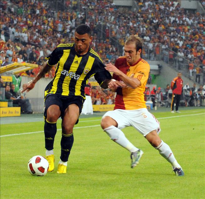 SPOR TOTO SUPER LIGI'NDE FENERBAHCE ILE GALATASARAY KARSILASTI. FENERBAHCELI COLIN KAZIM ILE GALATASARAYLI SERVET CETIN'IN (76) BIR MUCADELESI. (ANADOLU AJANSI - ERHAN SEVENLER) (20101024) ERHAN SEVENLER