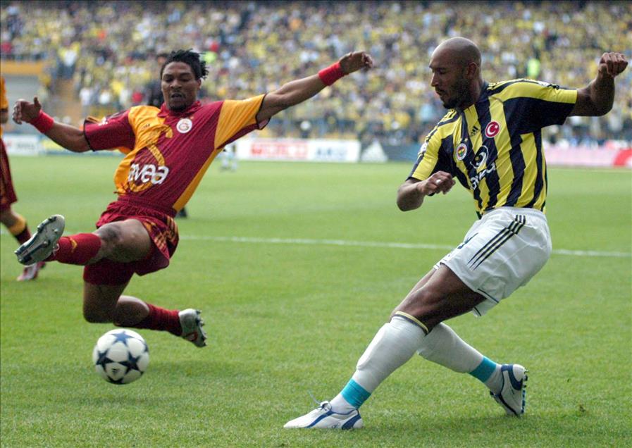 FENERBAHCE ILE GALATASARAY TAKIMLARI, TURKIYE SUPER FUTBOL LIGI'NIN DERBY MACINDA, FENERBAHCE SUKRU SARACOGLU STADI'NDA KARSILASTILAR. ANELKA ILE SONG MUCADELEDE. (ANADOLU AJANSI / AZIZ UZUN) (20050522)AZIZ UZUN