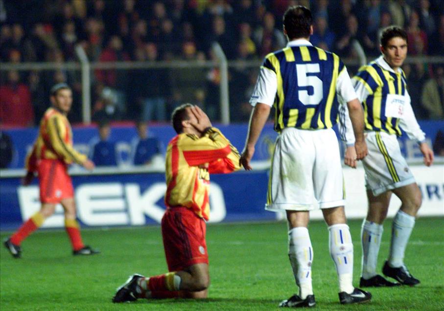 BIRINCI FUTBOL LIGI'NDE YAPILAN DERBI MACTA GALATASARAY ILE FENERBAHCE KARSILASTI. (ANADOLU AJANSI-OKTAY CILESIZ) (20001126)