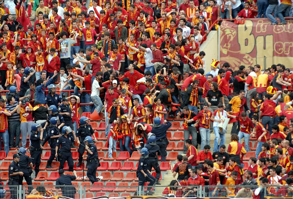 GALATASARAY-FENERBAHCE TURKCELL SUPER LIGI KARSILASMASI ONCESINDE GALATASARAYLI TARAFTARLAR ILE POLIS ARASINDA ARBEDE YASANDI. (ANADOLU AJANSI / OKTAY CILESIZ) (20070519)OKTAY CILESIZ