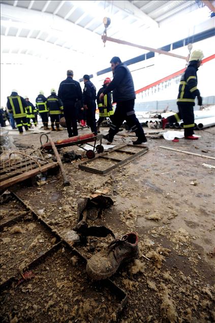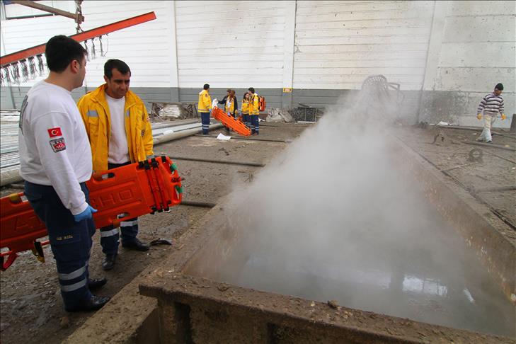 GAZIANTEP'TE, 4. ORGANIZE SANAYI BOLGESI'NDEKI BIR GALVANIZ URETIM TESISLERINDE, HENUZ BILINMEYEN BIR NEDENLE PATLAMA MEYDANA GELDI. PATLAMANIN ARDINDAN CALISANLAR VE YAKINLARI ENDISE ICINDE BEKLEDI. (ANADOLU AJANSI - VELI GURGAH) (20130130)VELI GURGAH