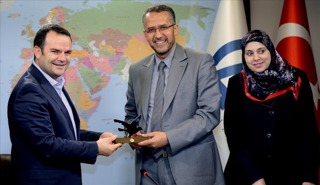 FAS PARLAMENTO VE SIVIL TOPLUM BAKANI LAHBIB CHUBANI (SAG 2), ANADOLU AJANSI'NI ZIYARET EDEREK AA GENEL MUDURU VE YONETIM KURULU BASKANI KEMAL OZTURK'TEN BILGI ALDI. (ANADOLU AJANSI - AHMET IZGI) (20121018)AHMET IZGI