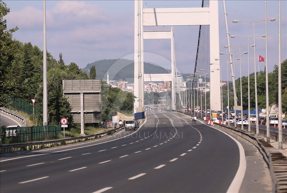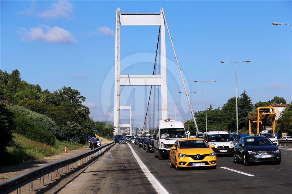 Fatih Sultan Mehmet (FSM) Köprüsü, üstyapı ve derz onarım çalışmalarının ikinci etabındaki son çalışmaların tamamlanmasının ardından trafiğe açıldı. ( Mehmet Eser - Anadolu Ajansı )Mehmet Eser