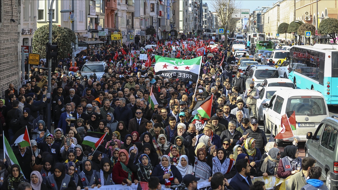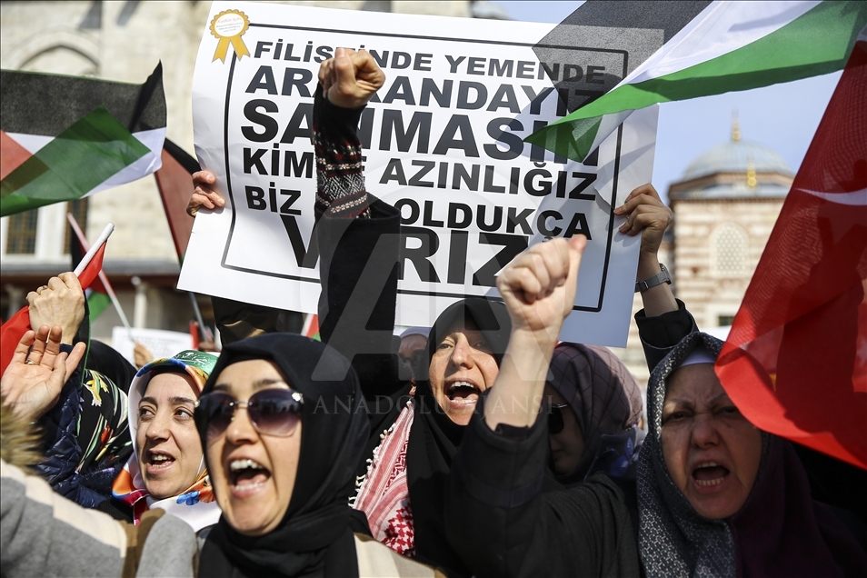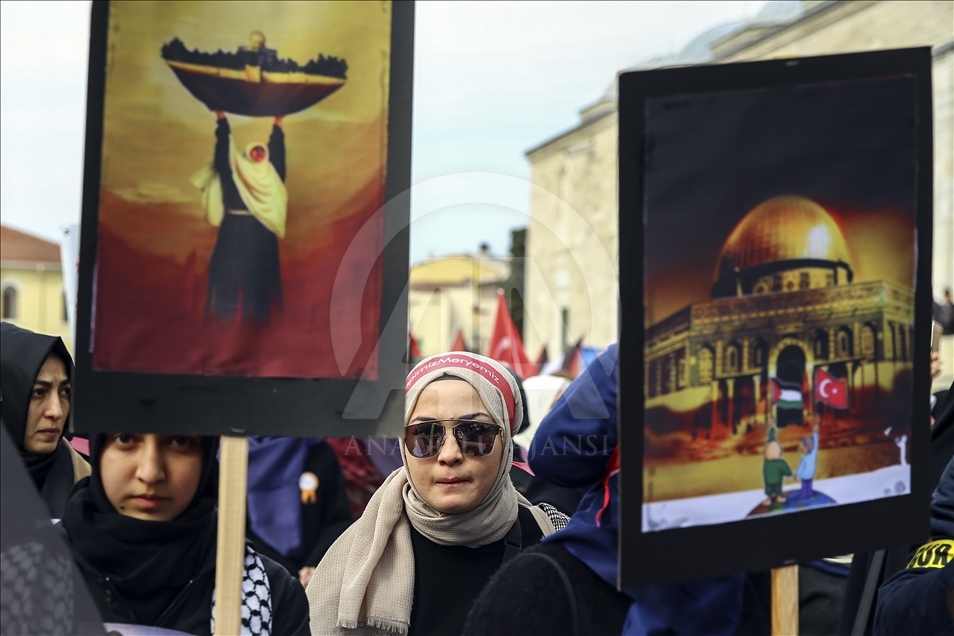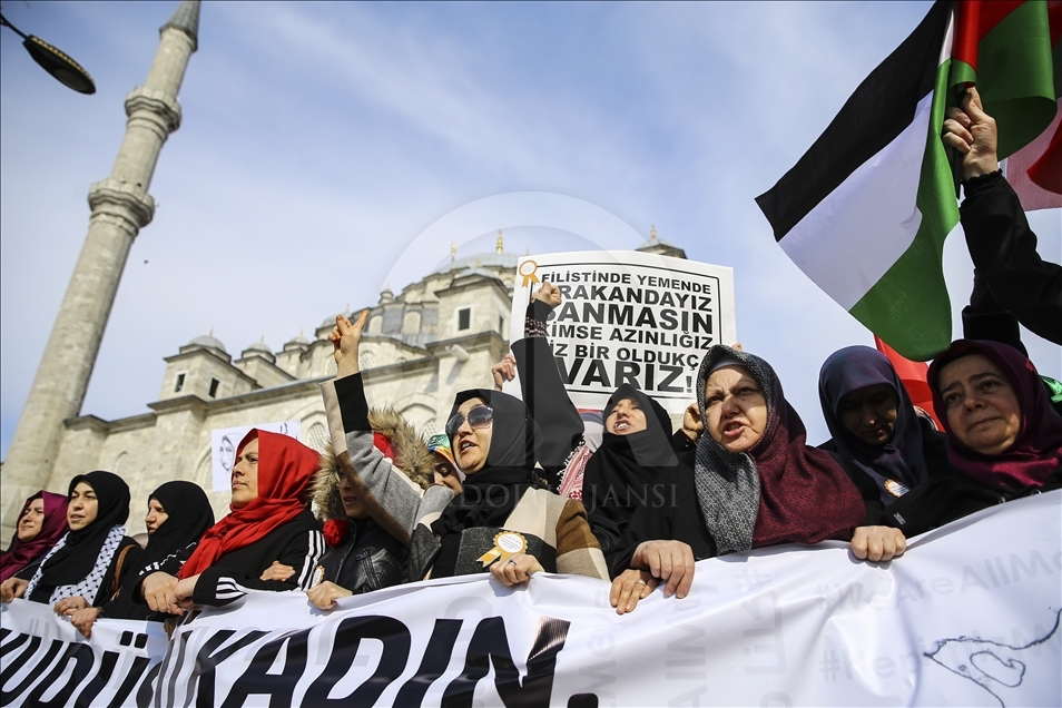 Uluslararası Kudüs Eğitim Kültür ve Araştırma Derneği (UKEAD) öncülüğünde, aralarında İHH İnsani Yardım Vakfı'nın da bulunduğu sivil toplum kuruluşu temsilcileri, Filistinli kadınlara destek olmak amacıyla Fatih Camisi'nden Saraçhane Parkı'na yürüyüş düzenledi.