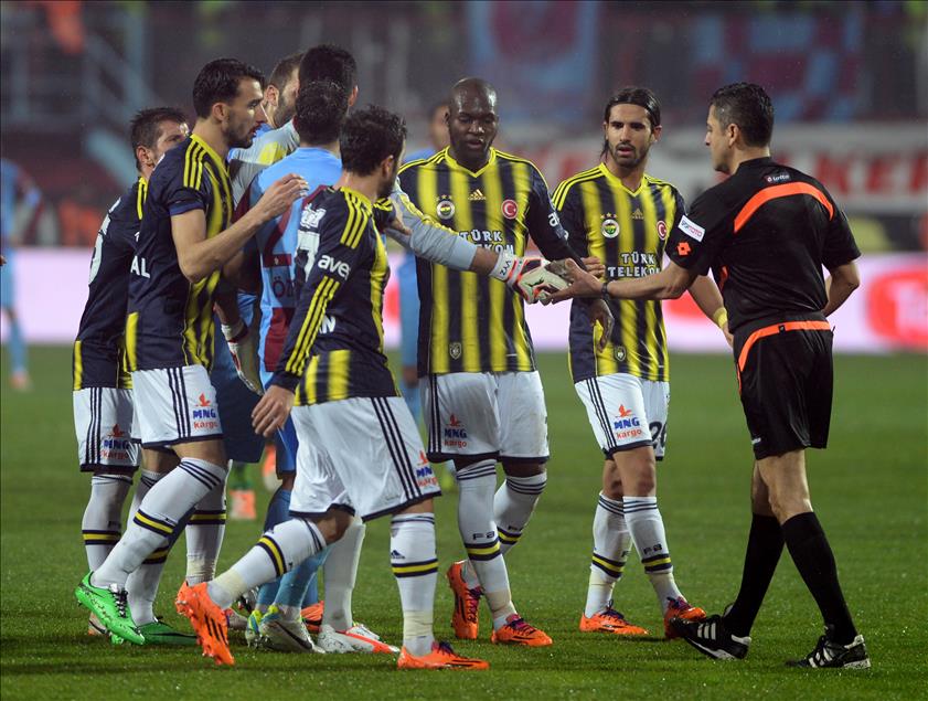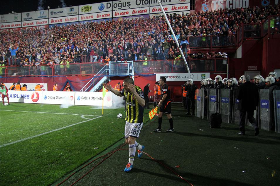 Spor Toto Süper Lig'de Trabzonspor ile Fenerbahçe karşı karşıya geldi. Maç, sahaya atılan yabancı maddeler nedeniyle maçın hakemi Bülent Yıldırım tarafından tatil edildi. (İbrahim Hakkı ŞAHİN - Anadolu Ajansı)İbrahim Hakkı ŞAHİN