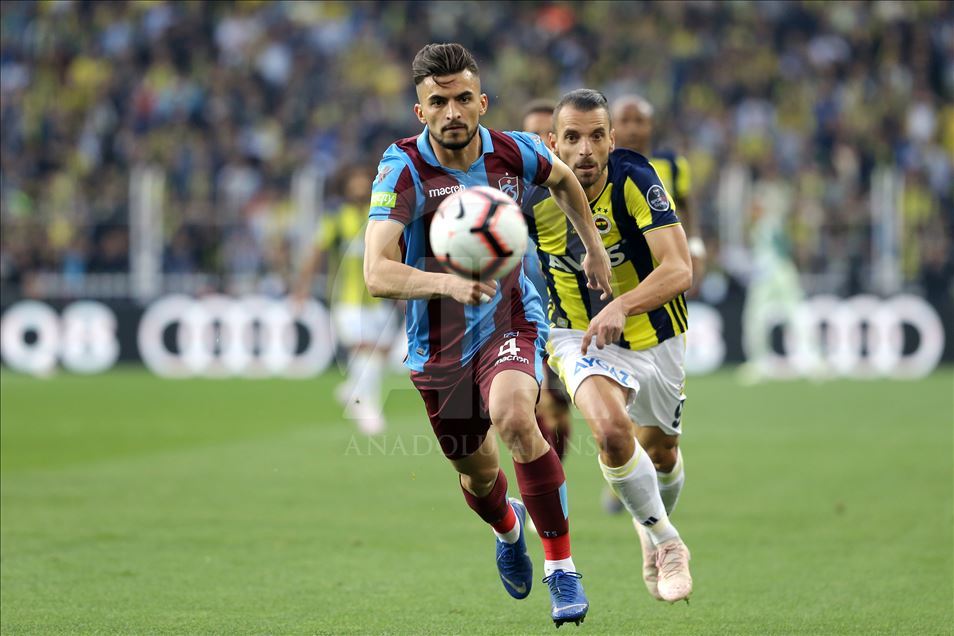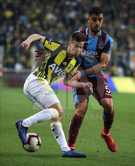 Spor Toto Süper Lig'in 30. haftasında Fenerbahçe ile Trabzonspor takımları, Ülker Stadyumu'nda karşılaştı. Fenerbahçeli oyuncu Miha Zajc (solda), bir pozisyonda Trabzonspor oyuncusu Majid Hosseini (5) ile mücadele etti. ( Şebnem Coşkun - Anadolu Ajansı )Şebnem Coşkun