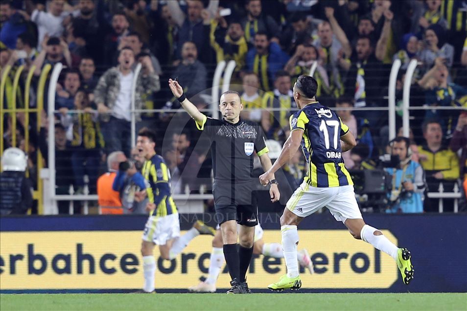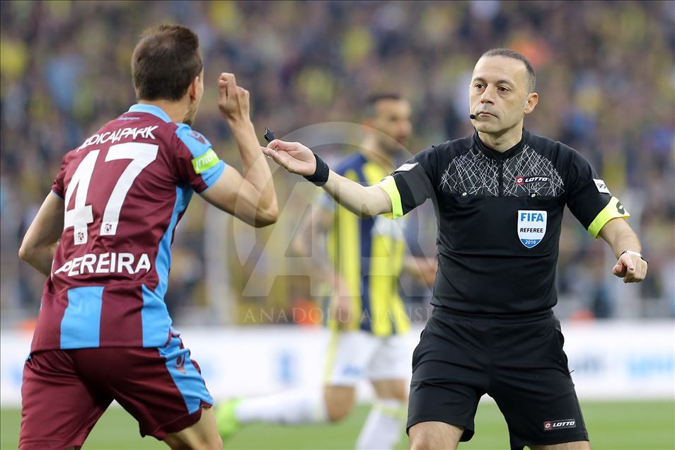 Spor Toto Süper Lig'in 30. haftasında Fenerbahçe ile Trabzonspor takımları, Ülker Stadyumu'nda karşılaştı. Trabzonsporlu futbolcu Joao Pedro Da Silva Pereira (solda), bir pozisyon sonrası maçın hakemi Cüneyt Çakır'a itirazda bulundu. ( Orhan Akkanat - Anadolu Ajansı )Orhan Akkanat