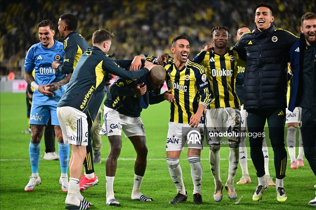 Karşılaşmayı kazanan Fenerbahçeli oyuncular maç sonu sevinç yaşadı. (Serhat Çağdaş - Anadolu Ajansı)