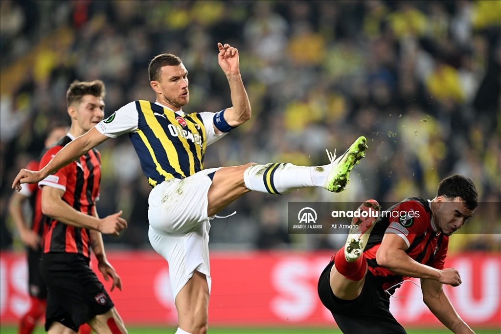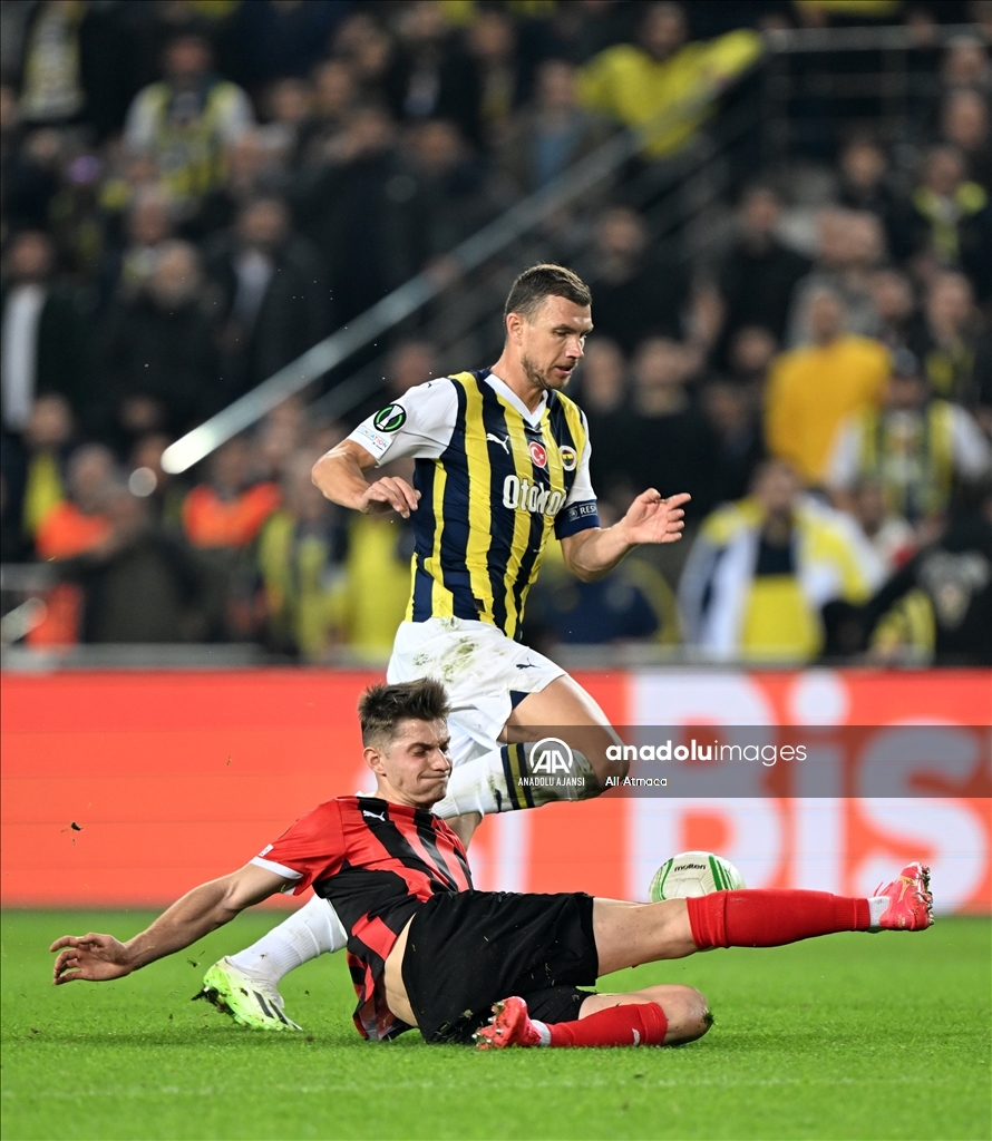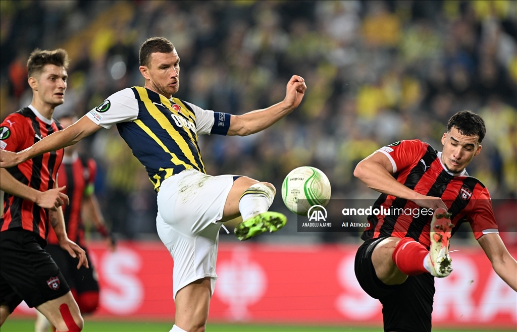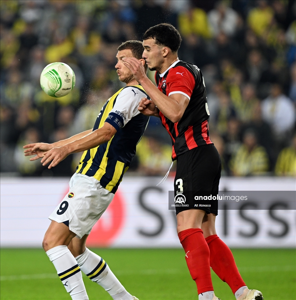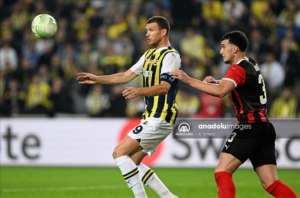 UEFA Avrupa Konferans Ligi H Grubu’nda Fenerbahçe ile Spartak Trnava takımları Ülker Stadı'nda karşılaştı. Bir pozisyonda Fenerbahçe oyuncusu Edin Dzeko (9) rakibiyle mücadele etti. ( Ali Atmaca - Anadolu Ajansı )Ali Atmaca