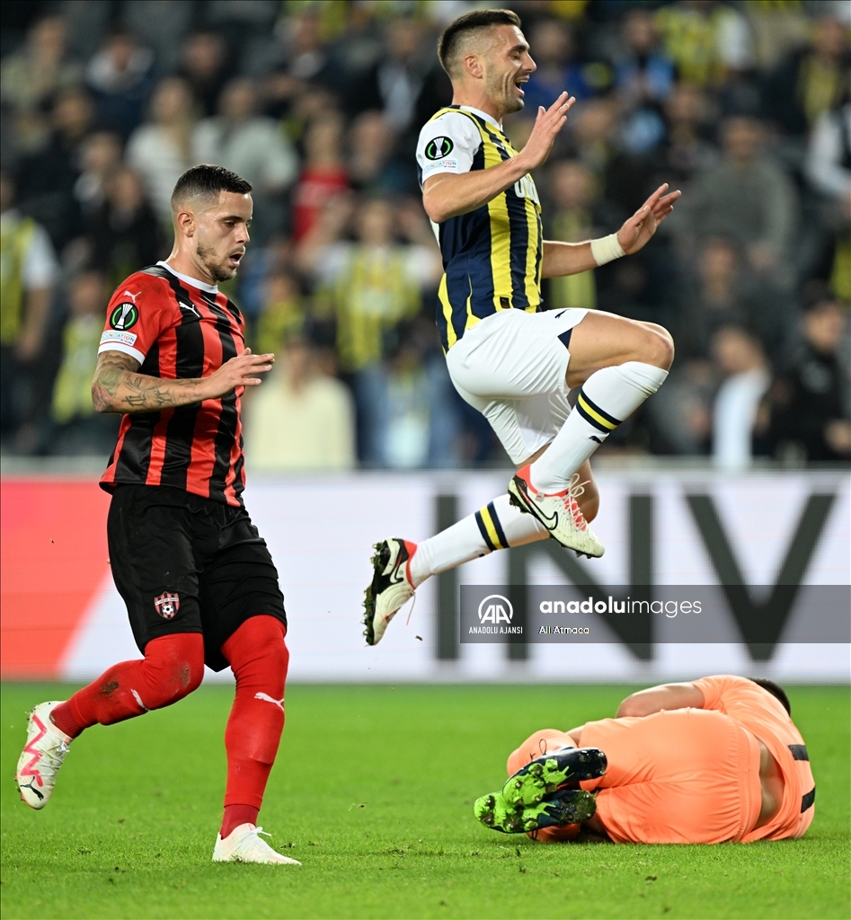 UEFA Avrupa Konferans Ligi H Grubu’nda Fenerbahçe ile Spartak Trnava takımları Ülker Stadı'nda karşılaştı. Bir pozisyonda Fenerbahçe oyuncusu Alexander Djiku (6) ile Spartak Tırnava oyuncusu Duris (önde) mücadele etti. ( Ali Atmaca - Anadolu Ajansı )Ali Atmaca