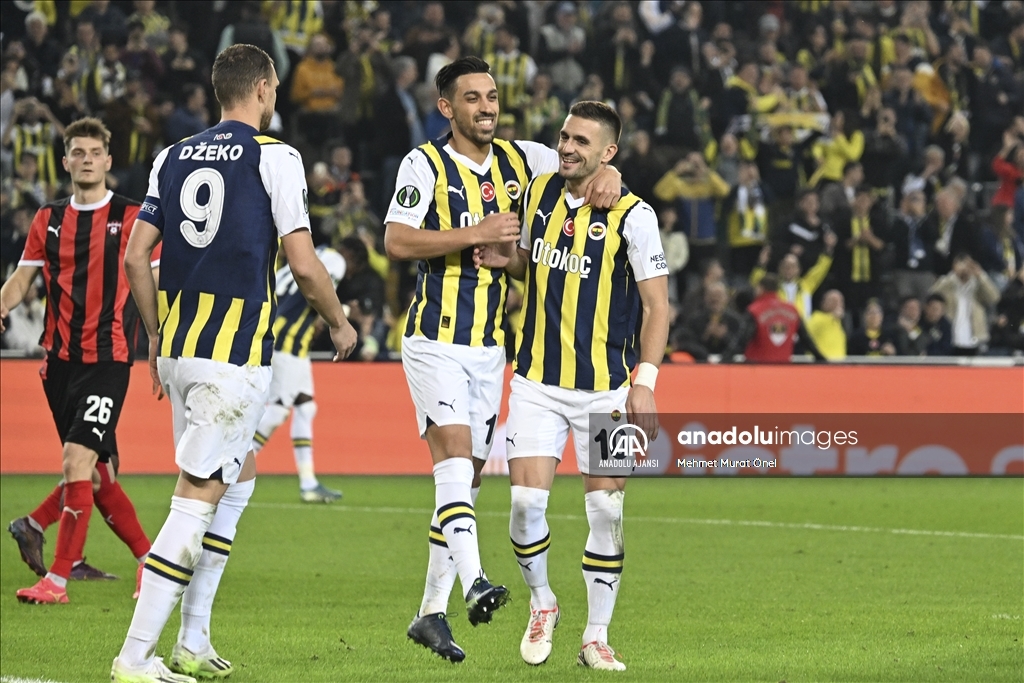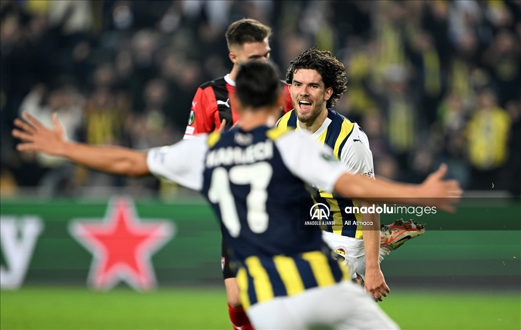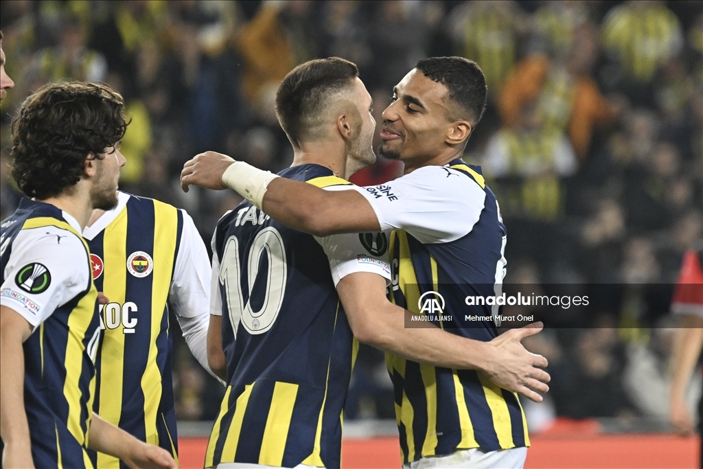 UEFA Avrupa Konferans Ligi H Grubu’nda Fenerbahçe ile Spartak Trnava takımları Ülker Stadı'nda karşılaştı. Fenerbahçeli oyuncular Ferdi Kadıoğlu'nun (7) attığı golün ardından sevinç yaşadı. ( Ali Atmaca - Anadolu Ajansı )Ali Atmaca