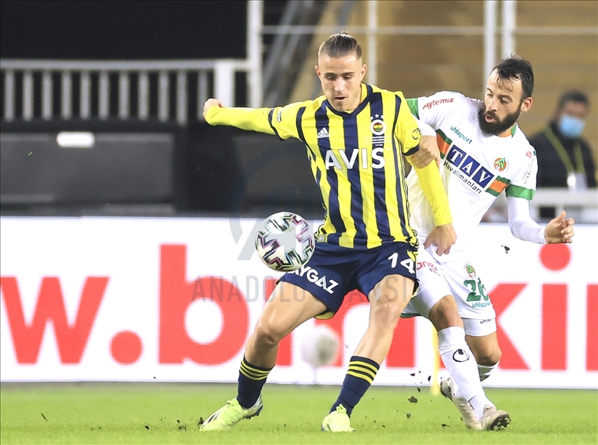 Fenerbahçe, Süper Lig'in 17. hafta maçında Aytemiz Alanyaspor ile Ülker Stadı'nda karşılaştı. Fenerbahçeli oyuncu Sadık Çiftpınar (solda) ile Aytemiz Alanyaspor futbolcusu Efecan Karaca (sağda) bir pozisyonda mücadele etti. ( Serhat Çağdaş - Anadolu Ajansı )Serhat Çağdaş