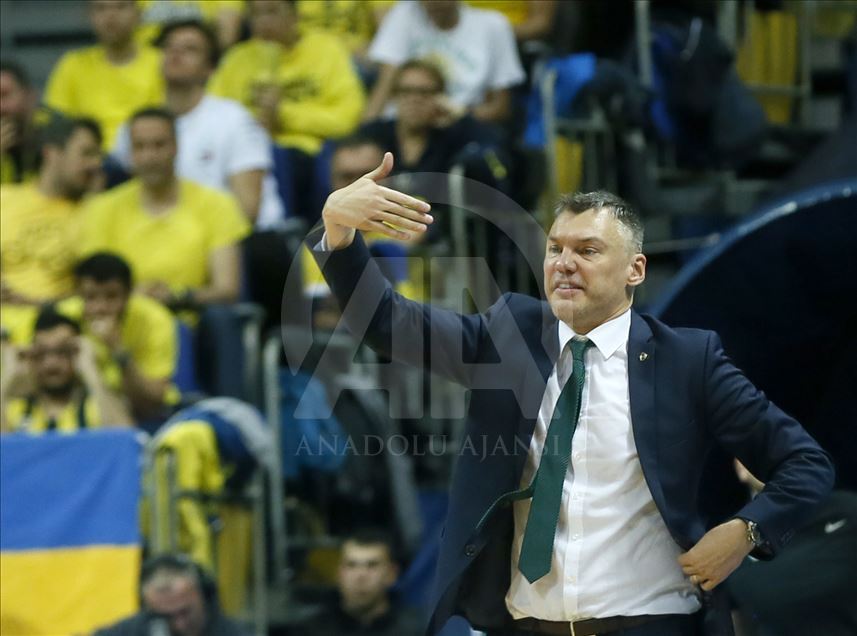 Fenerbahçe Beko, THY Avrupa Ligi play-off çeyrek final ikinci maçında Litvanya temsilcisi Zalgiris ile karşı karşıya geldi. Zalgiris başantrenörü Sarunas Jasikevicius, oyuncularına taktik verdi. ( Erhan Elaldı - Anadolu Ajansı )Erhan Elaldı