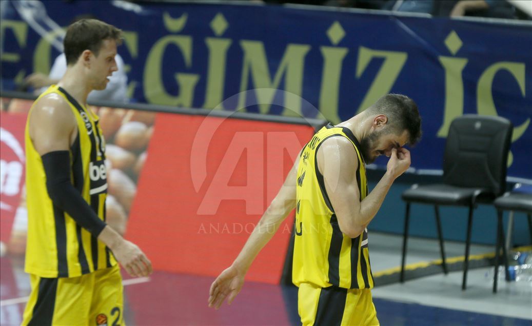 Fenerbahçe Beko, THY Avrupa Ligi play-off çeyrek final ikinci maçında Litvanya temsilcisi Zalgiris ile karşı karşıya geldi. Fenerbahçe Bekolu oyuncular mağlubiyet sonrası üzüntü yaşadı. ( Erhan Elaldı - Anadolu Ajansı )Erhan Elaldı