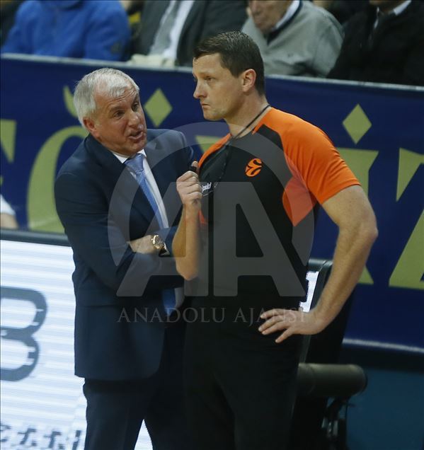 Fenerbahçe Beko, THY Avrupa Ligi play-off çeyrek final ikinci maçında Litvanya temsilcisi Zalgiris ile karşı karşıya geldi. Fenerbahçe Beko başantrenörü Zeljko Obradovic, bir pozisyondan sonra hakeme itiraz etti. ( Erhan Elaldı - Anadolu Ajansı )Erhan Elaldı