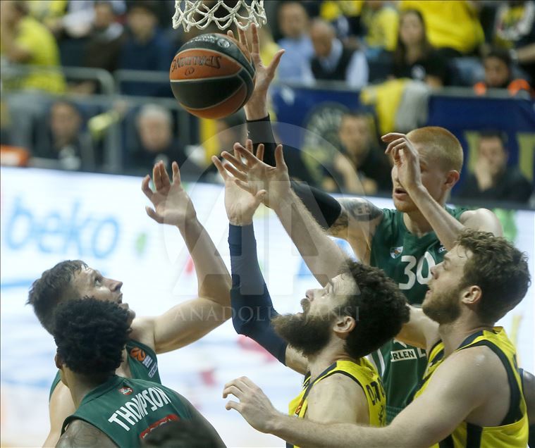 Fenerbahçe Beko, THY Avrupa Ligi play-off çeyrek final ikinci maçında Litvanya temsilcisi Zalgiris ile karşı karşıya geldi. Fenerbahçe Bekolu oyuncu Kostas Sloukas (solda) ile Zalgirisli basketbolcu Aaron White (30), bir pozisyonda mücadele etti. ( Erhan Elaldı - Anadolu Ajansı )Erhan Elaldı