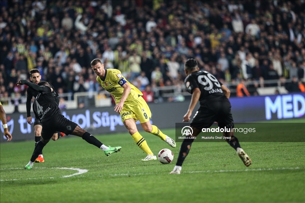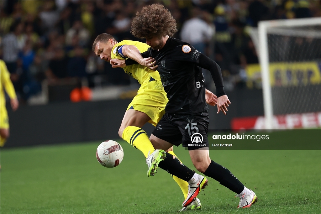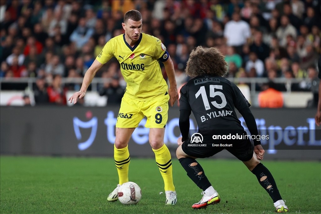 Trendyol Süper Lig'in 28. haftasında Atakaş Hatayspor ile Fenerbahçe, Mersin Stadyumu'nda karşılaştı. Bir pozisyonda, Hataysporlu Recep Burak Yılmaz (15) ile Fenerbahçeli Dzeko (solda) mücadele etti. ( Eren Bozkurt - Anadolu Ajansı )Eren Bozkurt