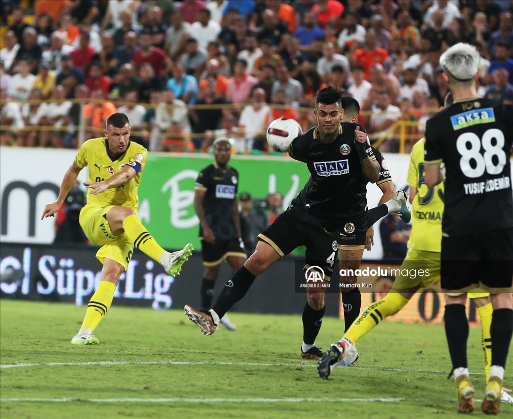 Trendyol Süper Lig'in 6. haftasında Corendon Alanyaspor ile Fenerbahçe, Alanya Oba Stadı'nda karşılaştı. Bir pozisyonda Fenerbahçe'den Dzeko (solda) rakip alanda etkili olmaya çalıştı.