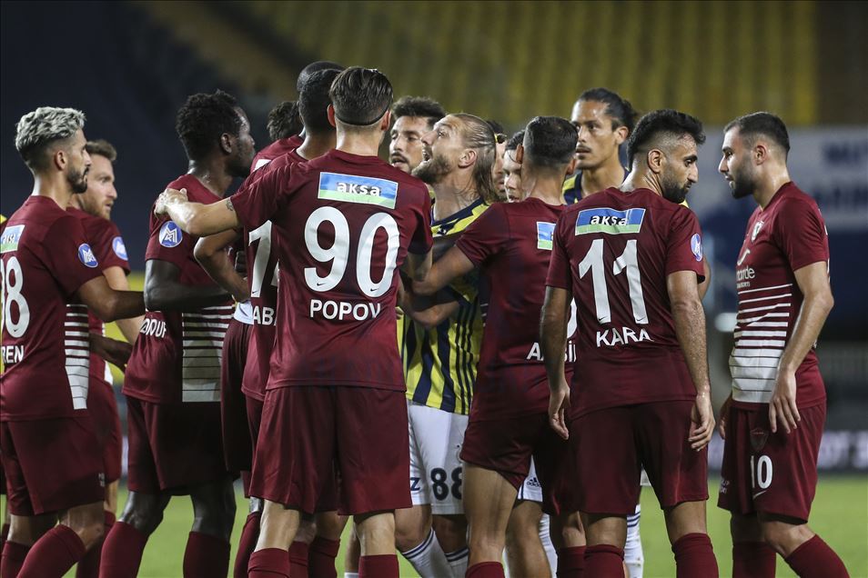 Fenerbahçe, Süper Lig'in 2. hafta maçında Atakaş Hatayspor ile Ülker Stadı'nda karşılaştı. Bir pozisyon sonrası Atakaş Hataysporlu futbolcular baraj kurdu. ( Serhat Çağdaş - Anadolu Ajansı )Serhat Çağdaş