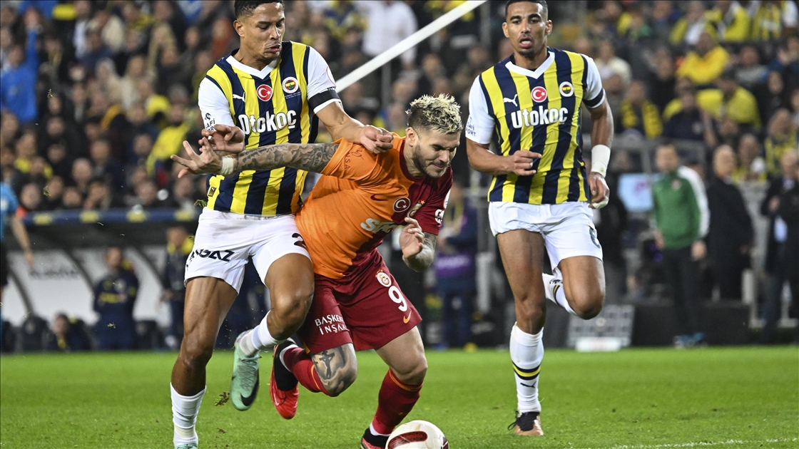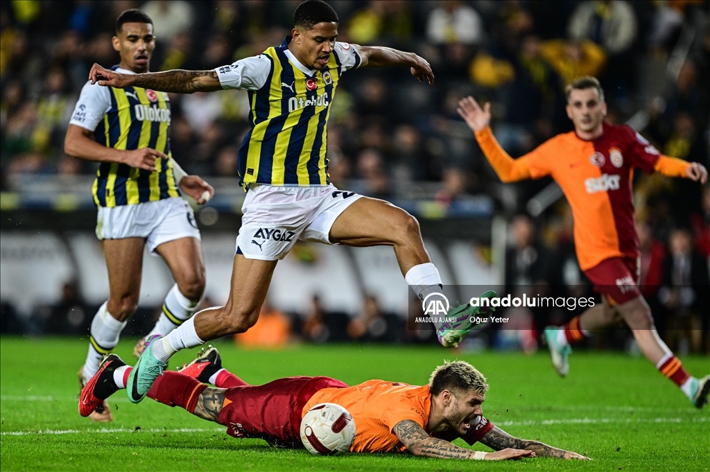 Trendyol Süper Lig’in 18. haftasında Fenerbahçe ile Galatasaray Ülker Stadı’nda karşılaştı. Bir pozisyonda Fenerbahçeli futbolcu Jayden Oosterwolde (üstte) ile Galatasaraylı futbolcu Mauro Icardi (yerde) mücadele etti. ( Oğuz Yeter - Anadolu Ajansı )Oğuz Yeter