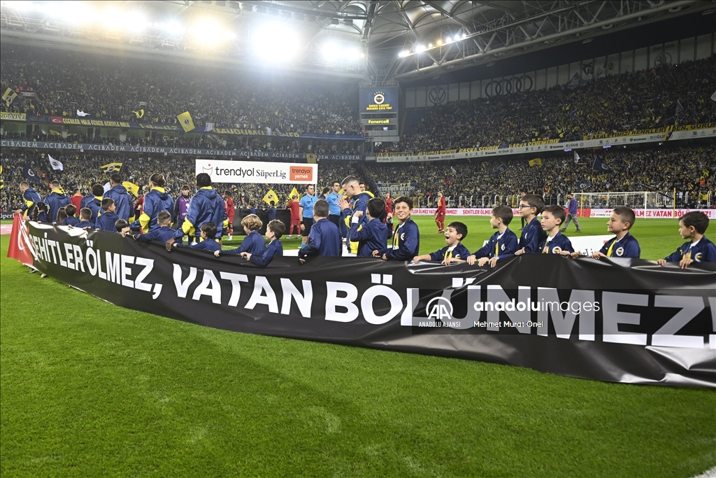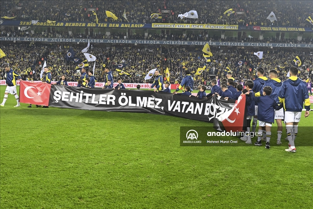 Trendyol Süper Lig'in 18. hafta mücadelesinde Fenerbahçe ile Galatasaray takımları, Ülker Stadı'nda karşılaştı. Fenerbahçeli futbolcular "Şehitler Ölmez, Vatan Bölünmez!" yazılı pankartla sahaya çıktı. ( Mehmet Murat Önel - Anadolu Ajansı )Mehmet Murat Önel