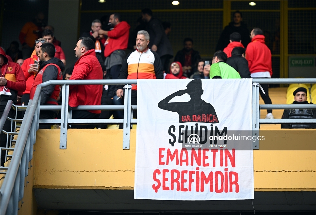 Trendyol Süper Lig'in 18. haftasında Fenerbahçe ile Galatasaray takımları, Ülker Stadı'nda karşılaştı. Galatasaraylı taraftarlar, Irak'ın kuzeyindeki Pençe-Kilit Harekatı bölgesindeki üs bölgesine sızmaya çalışan teröristlerle güvenlik güçleri arasında çıkan çatışmada şehit olan askerler için ''Şehidim emanetin şerefimdir'' yazılı afiş astı. ( Ali Atmaca - Anadolu Ajansı )Ali Atmaca