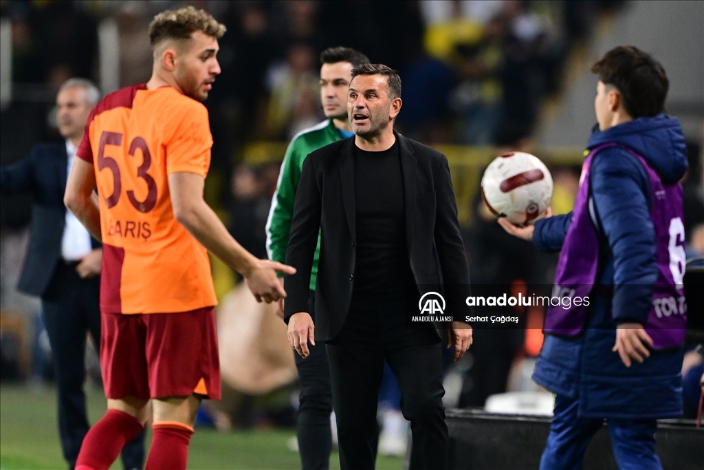 Trendyol Süper Lig'in 18. haftasında Fenerbahçe ile Galatasaray takımları, Ülker Stadı'nda karşılaştı. Galatasaray Teknik Direktörü Okan Buruk (ortada), oyuncularına taktik verdi ( Serhat Çağdaş - Anadolu Ajansı )Serhat Çağdaş