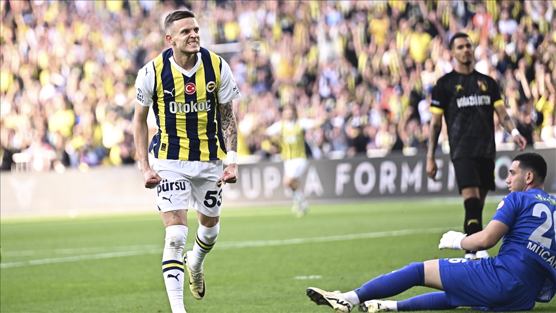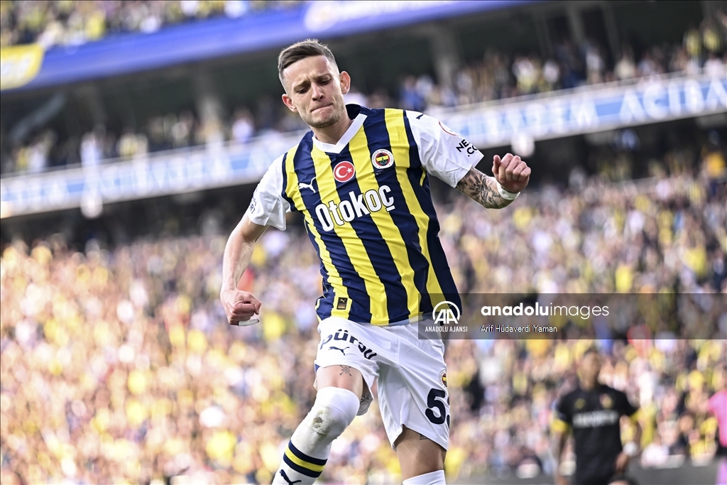 Trendyol Süper Lig'in 38. haftasında, Fenerbahçe ile İstanbulspor takımları Ülker Stadı'nda karşılaştı. Fenerbahçe oyuncusu Sebastian Szymanski (53) attığı golün ardından sevinç yaşadı. ( Arif Hüdaverdi Yaman - Anadolu Ajansı )Arif Hüdaverdi Yaman