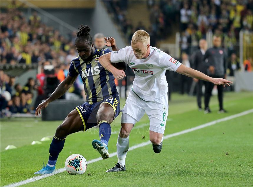 Süper Lig’in 9. haftasında Fenerbahçe ile İttifak Holding Konyaspor, Ülker Stadı’nda karşılaştı. Bir pozisyonda Fenerbahçeli futbolcu Victor Moses (solda) ile İttifak Holding Konyasporlu oyuncu Jens Jonsson (sağda) mücadele etti. ( İsa Terli - Anadolu Ajansı )İsa Terli