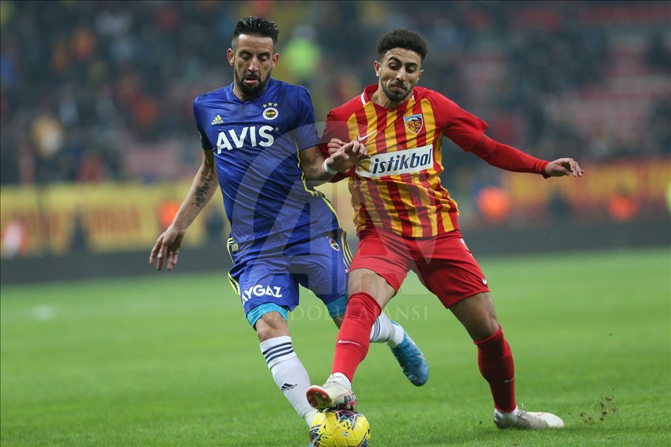 Süper Lig'de İstikbal Mobilya Kayserispor ile Fenerbahçe, Kadir Has Stadyumu'nda karşılaştı. Bir pozisyonda Fenerbahçeli futbolcu Rodrigues (solda) ile İstikbal Mobilya Kayserisporlu oyuncu Şamil Çinaz (sağda) mücadele etti. ( Sercan Küçükşahin - Anadolu Ajansı )Sercan Küçükşahin