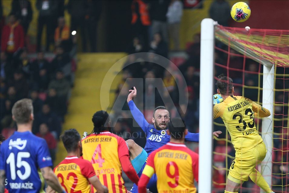 Süper Lig'de İstikbal Mobilya Kayserispor ile Fenerbahçe, Kadir Has Stadyumu'nda karşılaştı. Bir pozisyonda Fenerbahçeli futbolcu Muriç'in kafa vuruşunda top direkten geri döndü. ( Sercan Küçükşahin - Anadolu Ajansı )Sercan Küçükşahin