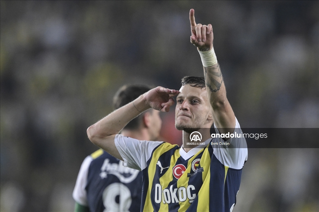 Trendyol Süper Lig'in 3. haftasından ertelenen maçta Fenerbahçe ile RAMS Başakşehir takımları Ülker Stadı'nda karşılaştı. Fenerbahçeli oyuncu Sebastian Szymanski, attığı golün ardından sevinç yaşadı. ( Berk Özkan - Anadolu Ajansı )Berk Özkan