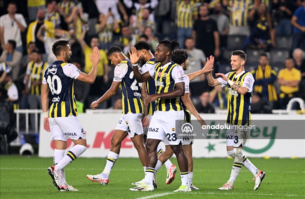 Trendyol Süper Lig'in 3. haftasından ertelenen maçta Fenerbahçe ile RAMS Başakşehir takımları Ülker Stadı'nda karşılaştı. Fenerbahçe'nin golünü atan Alexander Kwabena Baidoo Djiku (sağda) gol sevincini arkadaşlarıyla paylaştı. ( Berk Özkan - Anadolu Ajansı )Berk Özkan