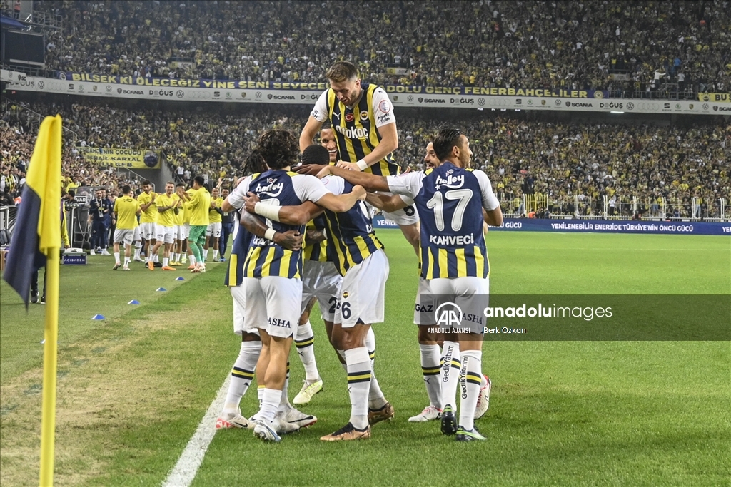 Trendyol Süper Lig'in 3. haftasından ertelenen maçta Fenerbahçe ile RAMS Başakşehir takımları Ülker Stadı'nda karşılaştı. Fenerbahçeli oyuncular Sebastian Szymanski'nin attığı golün ardından sevinç yaşadı. ( Berk Özkan - Anadolu Ajansı )Berk Özkan