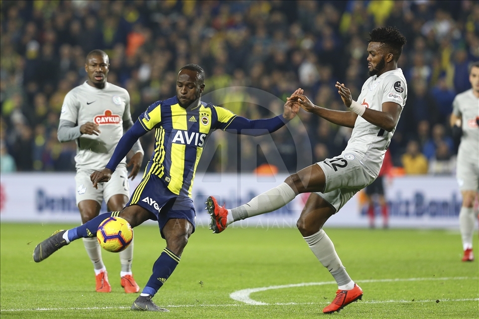 Spor Toto Süper Lig'in 24. haftasında Fenerbahçe ile Çaykur Rizespor takımları, Ülker Stadyumu'nda karşılaştı. Fenerbahçeli oyuncu Victor Moses (solda), bir pozisyonda Çaykur Rizespor oyuncusu Chidozie Collins Awaziem (12) ile mücadele etti. ( Serhat Çağdaş - Anadolu Ajansı )Serhat Çağdaş