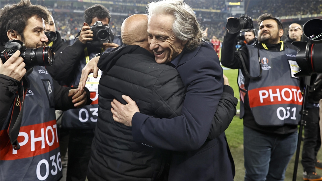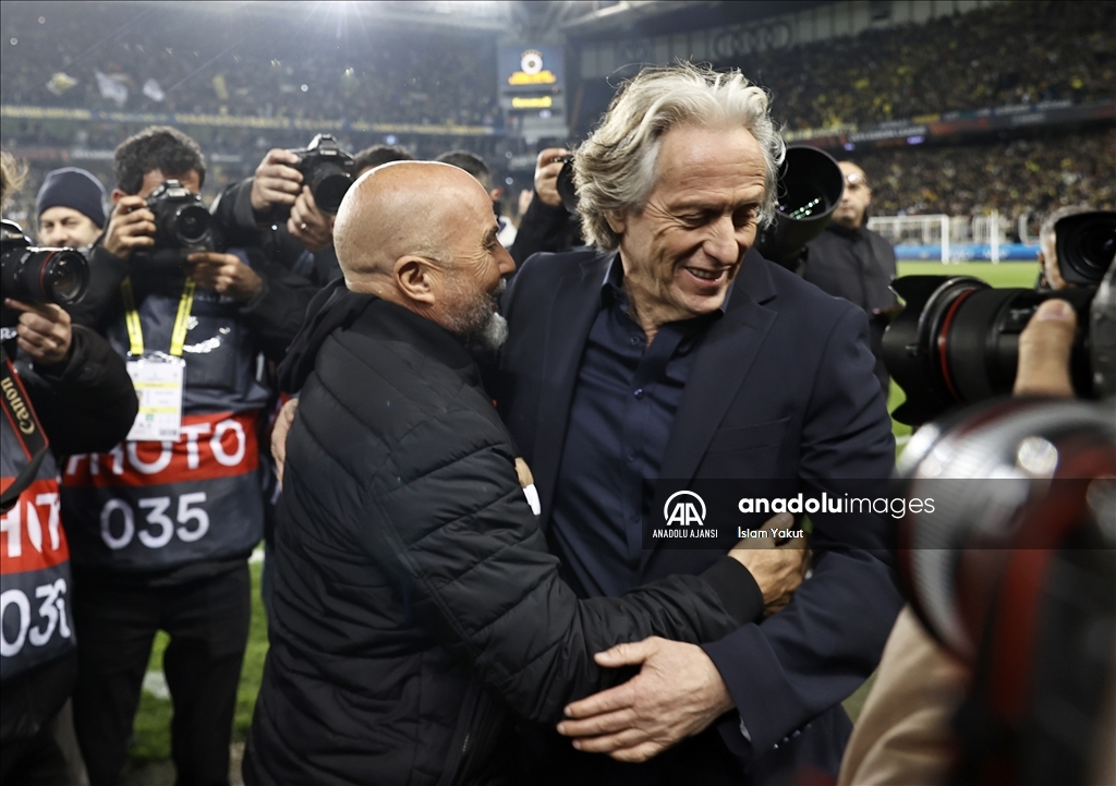 UEFA Avrupa Ligi son 16 turu rövanş maçında Fenerbahçe ile Sevilla, Ülker Stadı'nda karşılaştı. Fenerbahçe Teknik Direktörü Jorge Jesus (sağda) ve Sevilla Teknik Direktörü Jorge Sampaoli (solda) maç öncesi birbirlerine başarı diledi. ( İslam Yakut - Anadolu Ajansı )İslam Yakut