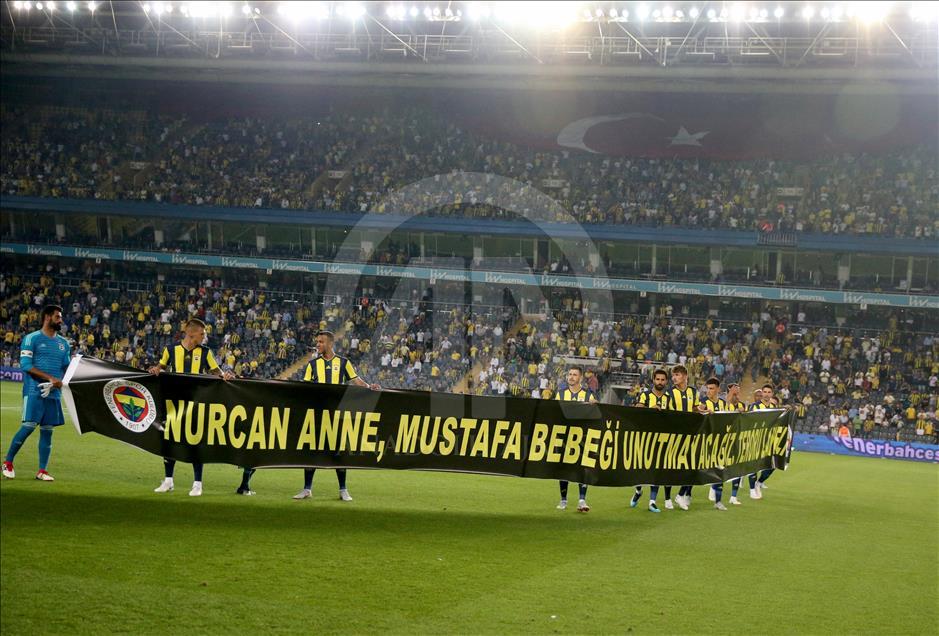 Fenerbahçe, İtalya'nın Cagliari takımıyla Ülker Stadı'nda özel maç yaptı. Fenerbahçeli futbolcular sahaya Hakkari'nin Yüksekova ilçesinde, PKK'lı teröristlerin yola tuzakladığı patlayıcının infilak etmesi sonucu şehit olan asker eşi Nurcan Karakaya ve 11 aylık bebeği Mustafa Bedirhan Karakaya için "Nurcan Anne, Mustafa Bebeği unutmayacağız, terörü lanetliyoruz" pankartıyla çıktı. ( Metin Pala - Anadolu Ajansı )Metin Pala