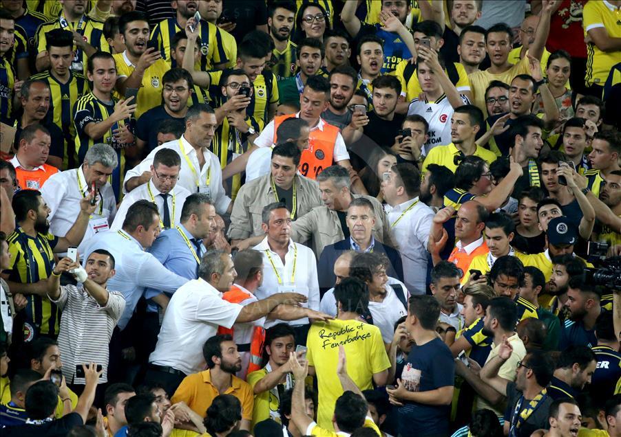 Fenerbahçe, hazırlık maçında İtalya'nın Cagliari takımıyla Ülker Stadı'nda karşılaştı. Fenerbahçeli futbolcular, maçın ardından taraftarları selamladı. ( Ahmet Dumanlı - Anadolu Ajansı )Ahmet Dumanlı