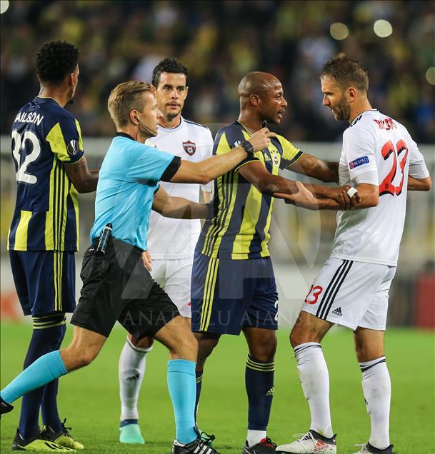 UEFA Avrupa Ligi D Grubu ikinci maçında Fenerbahçe, Slovakya'nın Spartak Trnava takımıyla Ülker Stadı'nda karşılaştı. Bir pozisyonda Fenerbahçeli oyuncu Andre Ayew (sağ 2) ile Spartak Trnavalı futbolcu Marek Bakos (23) tartışırken hakem Tobias Welz (sol 2) araya girdi. ( Salih Zeki Fazlıoğlu - Anadolu Ajansı )Salih Zeki Fazlıoğlu