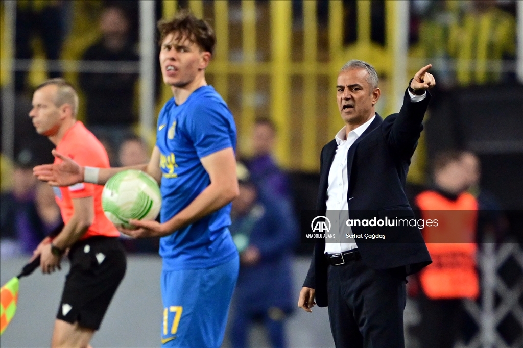 Fenerbahçe, UEFA Avrupa Konferans Ligi son 16 turu rövanş maçında Belçika'nın Union Saint-Gilloise takımı ile Ülker Stadı’nda karşılaştı. Fenerbahçe Teknik Direktörü İsmail Kartal (sağda), oyuncularına taktik verdi. ( Serhat Çağdaş - Anadolu Ajansı )Serhat Çağdaş